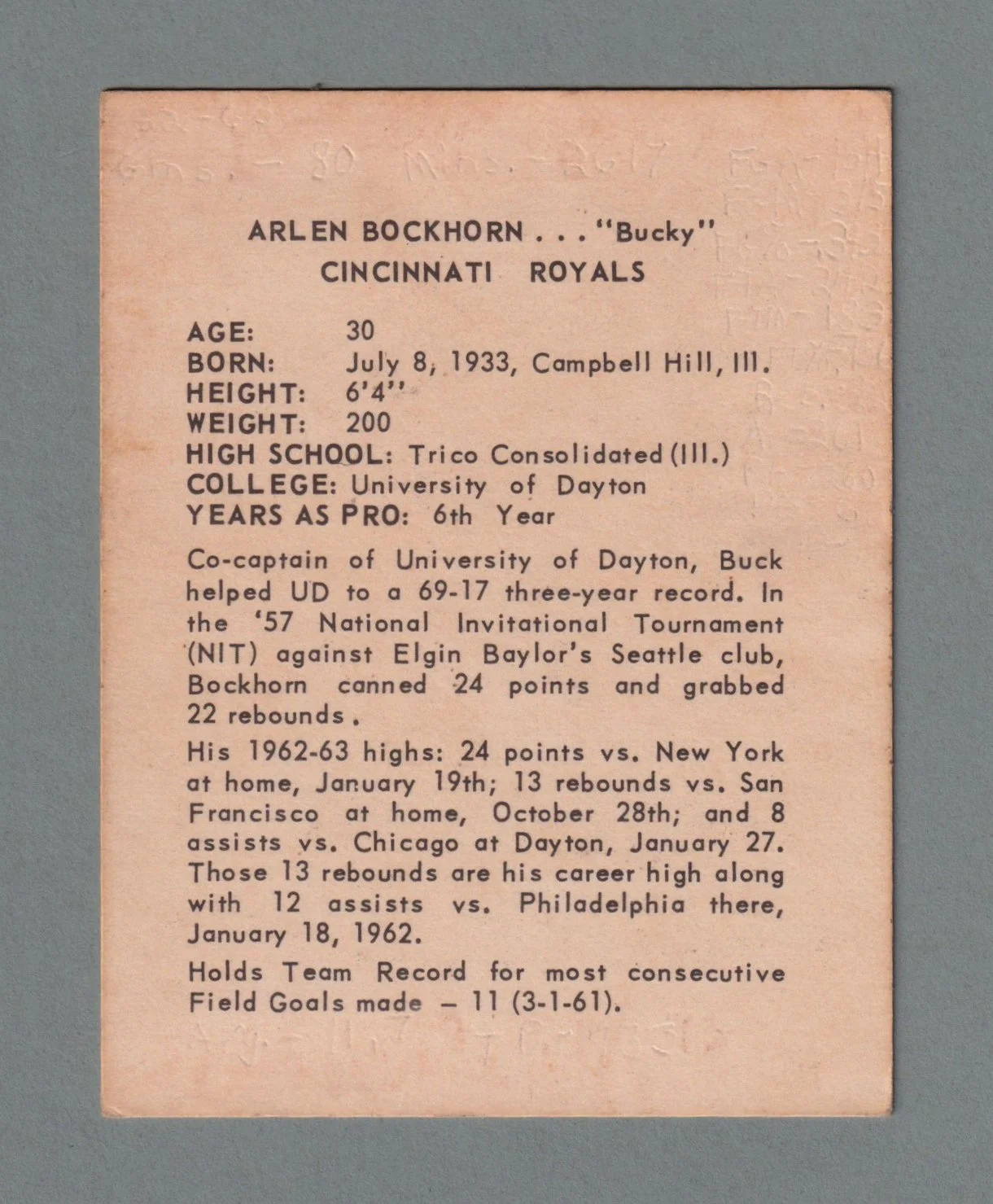Kahn's issued basketball cards in their hot dog packages from 1957-1965. The sets primarily featured Cincinnati Royals players, which was the team closest to Kahn’s. Jerry West was part of the 1960-63 sets. This year's set includes 13 total cards.